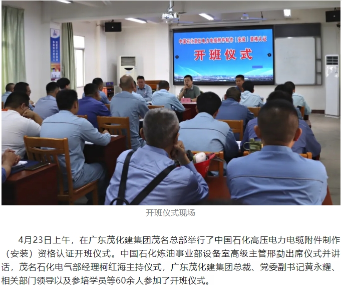首次中國石化煉化板塊高壓電力電纜附件制作(安裝)資格認證在茂名順利舉行
