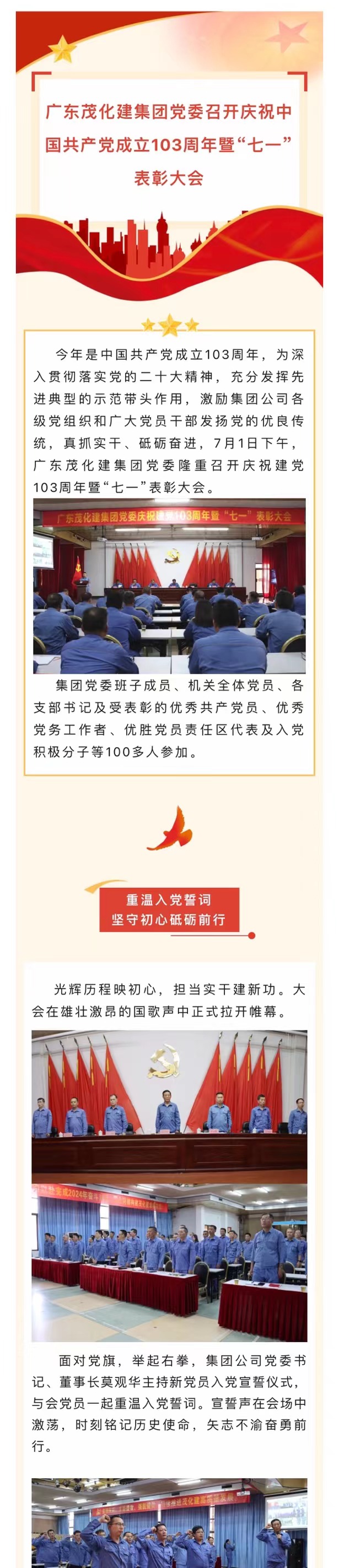 廣東茂化建集團(tuán)黨委召開慶祝中國(guó)共產(chǎn)黨成立103周年暨“七一”表彰大會(huì)