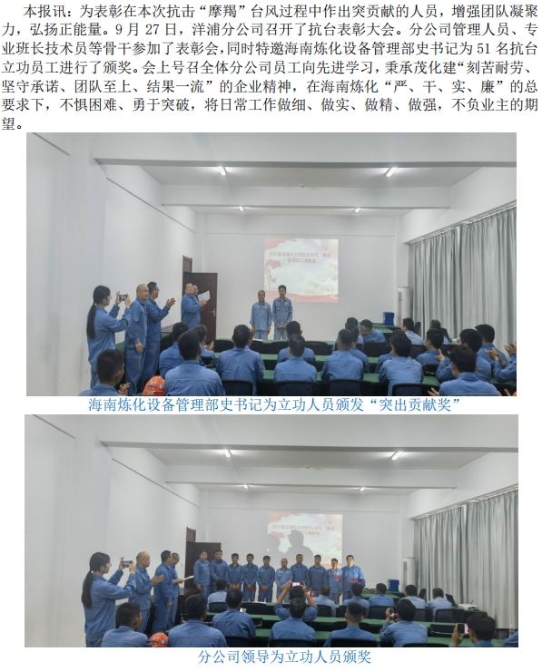 洋浦分公司隆重表彰抗擊“摩羯”立功人員