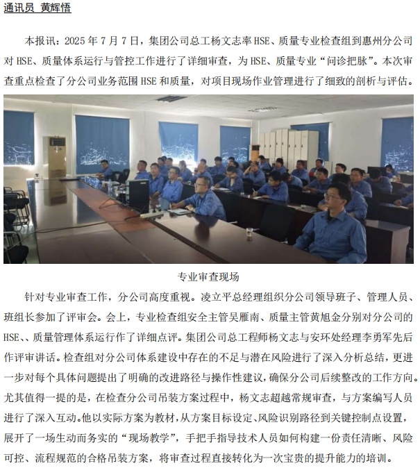 總部專家為惠州分公司體系管理運(yùn)行“問(wèn)診把脈”