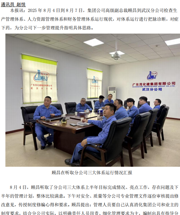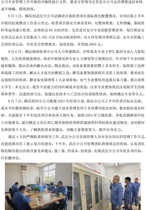 顧昌到武漢分公司檢查三大體系運(yùn)行情況