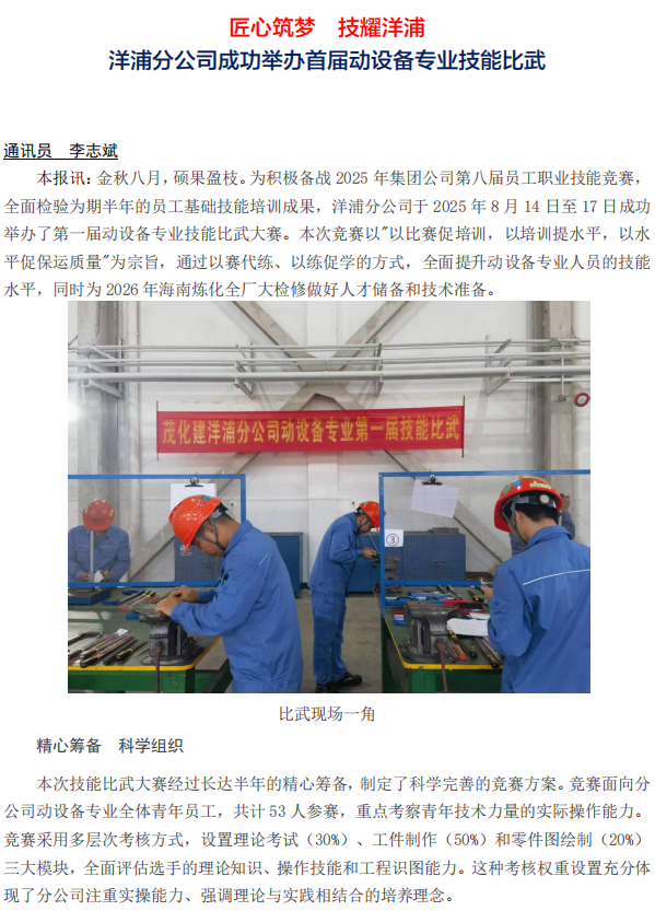 洋浦分公司成功舉辦首屆動(dòng)設(shè)備專業(yè)技能比武