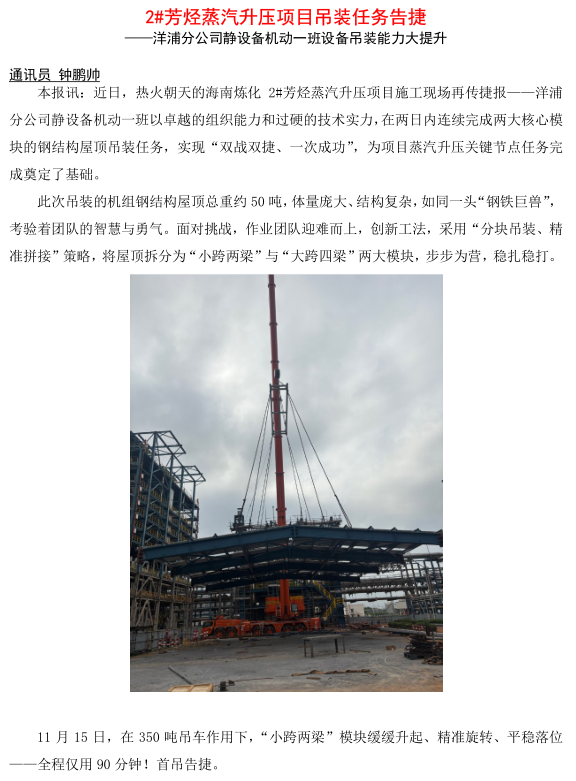 洋浦分公司靜設(shè)備機動一班設(shè)備吊裝能力大提升
