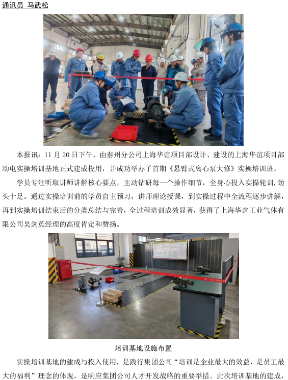 泰州分公司上海華誼項目部實操培訓基地建成開班